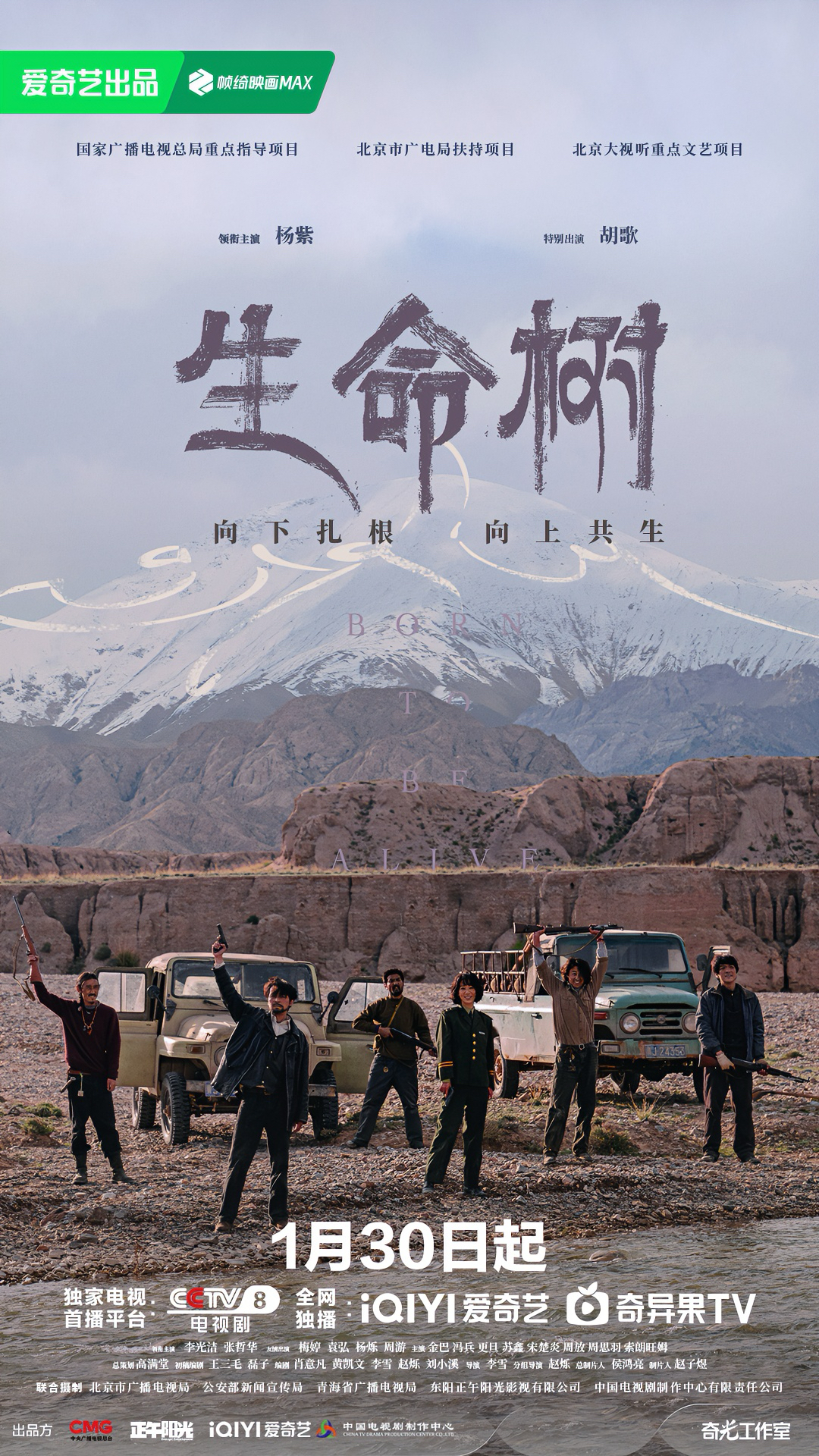 导演: 李雪 / 赵烁 编剧: 王三毛 / 王磊 / 肖意凡 / 黄凯文 / 李雪 / 赵烁 / 刘小溪 主演: 杨紫 / 胡歌 / 李光洁 / 张哲华 / 梅婷 / 袁弘 / 杨烁 / 周游 / 金巴 / 冯兵 / 更旦 / 苏鑫 / 宋楚炎 / 周放 / 周思羽 / 索朗旺姆 / 尕玛文加 / 才丁扎西 类型: 剧情 制片国家/地区: 中国大陆 语言: 汉语普通话 首播: 2026-01-30(中国大陆) 集数: 40 单集片长: 45分钟 又名: Born to be Alive IMDb: tt35045308 生命树的剧情简介 · · · · · · 上世纪九十年代,青海高原上的玛治县高度依赖农牧业,一度深陷贫困,其周边的无人区博拉木拉富含矿产和野生动物资源,大量的盗猎盗采分子为牟取暴利滥采滥杀。玛治县副县长多杰(胡歌 饰)在县长林培生(李光洁 饰)的支持下成立了巡山队,起初是为脱贫在无人区探矿,眼见藏羚羊被屠杀的惨状后,多杰将一切都倾注在环保上。而巡山队里的青年女警白菊(杨紫 饰)成了多杰命定的变数,她是援藏医生张勤勤(梅婷 饰)收养的遗孤,是白家敢闯敢拼的小女儿。白菊在亲临无人区之后迅速成长,与巡山队队员们成了莫逆之交,与报社记者邵云飞(张哲华 饰)相爱,众志成城以建立自然保护区,却在功成前夕经历了领袖多杰的失踪和巡山队的解散。十多年过去,博拉木拉重获宁静,煤矿盗采问题却让开发和环保的天平再次失衡,白菊与昔日爱人、旧友和手足家人重聚首,在新时代的环保路上一并追查着多杰失踪的真相,最终还英雄以清名,继续守护着青藏高原的绿水蓝天。